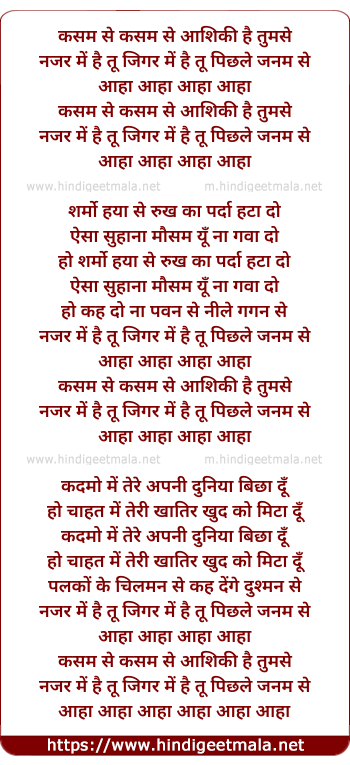 Lyrics of Kasam Se Kasam Se - कसम से कसम से