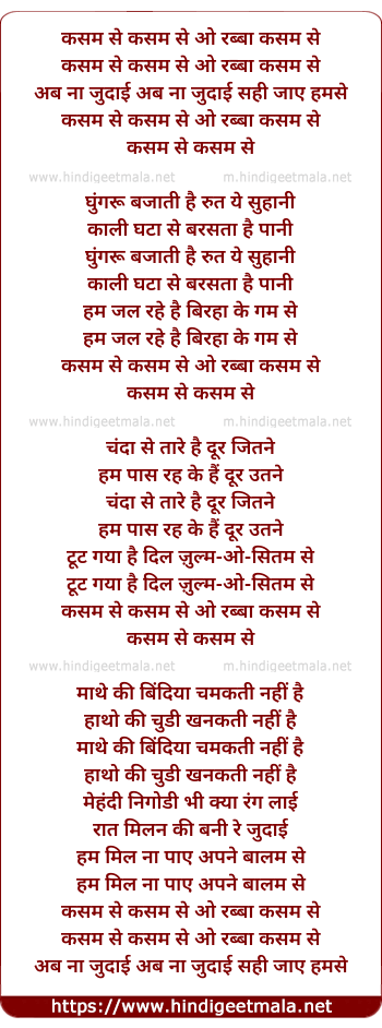 Lyrics of Kasam Se Kasam Se O Rabba Kasam Se - कसम से कसम से ओ रब्बा कसम से
