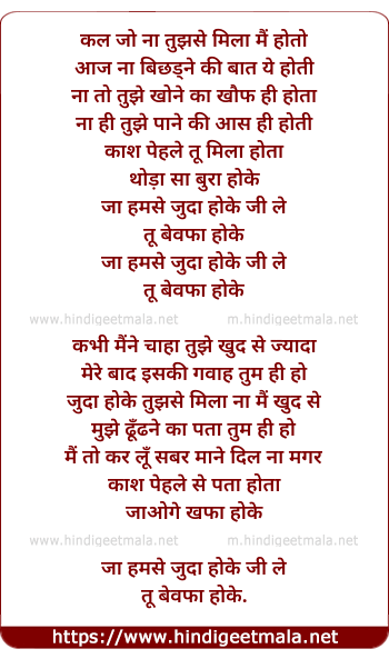 Lyrics of Kash Tu Mila Hota - काश तू मिला होता