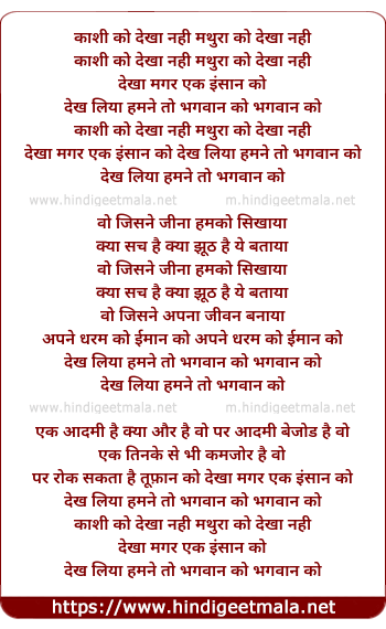 Lyrics of Kashi Ko Dekha Nahi Mathura Ko Dekha Nahi - काशी को देखा नही मथुरा को देखा नही