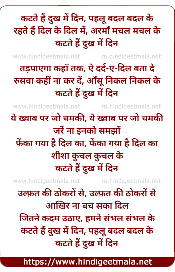 Lyrics of Katate Hain Dukh Me Ye Din Pahlu Badal Badal Ke - कटते हैं दुख में दिन, पहलू बदल बदल के
