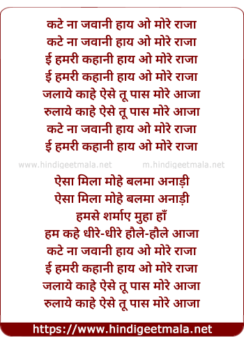 Lyrics of Kate Na Jawaani - कटे ना जवानी