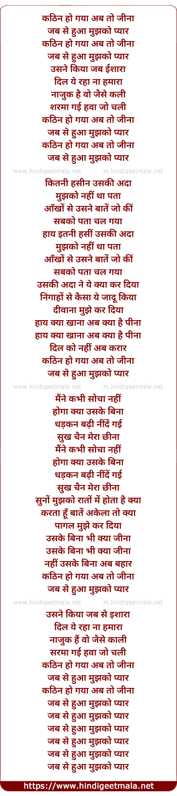 Lyrics of Kathin Ho Gaya - कठिन हो गया अब तो जीना