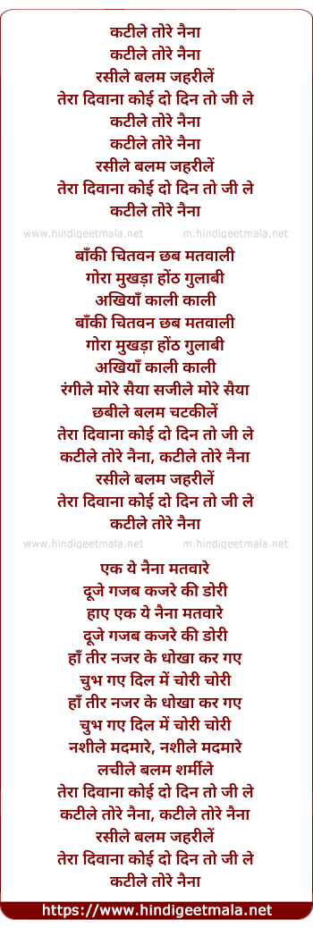 Lyrics of Katile Tore Naina - कटीले तोरे नैना