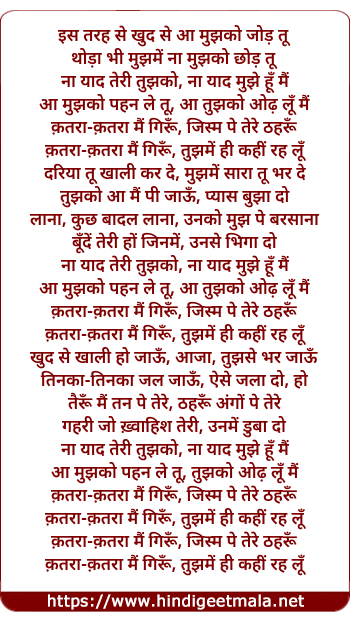 Poetic Translation - Lyrics of Katra Katra - कतरा कतरा