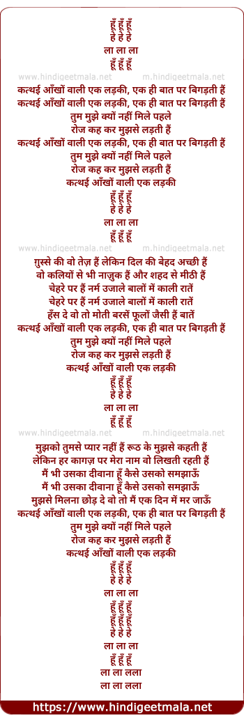 Lyrics of Katthai Aankho Vali Ik Ladaki - कत्थई आँखों वाली एक लड़की