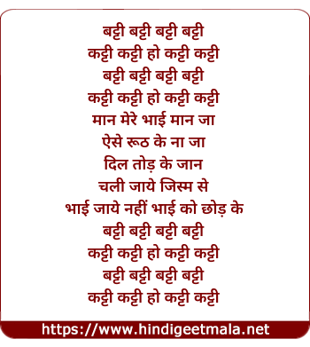 Lyrics of Katti Katti, Maan Mere Bhaai Maan Jaa (Sad) - बट्टी बट्टी बट्टी बट्टी