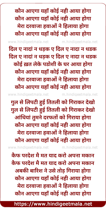 Kaun Aayega Yaha Koi Na Aaya Hoga - कौन आएगा यहाँ कोई नही आया होगा