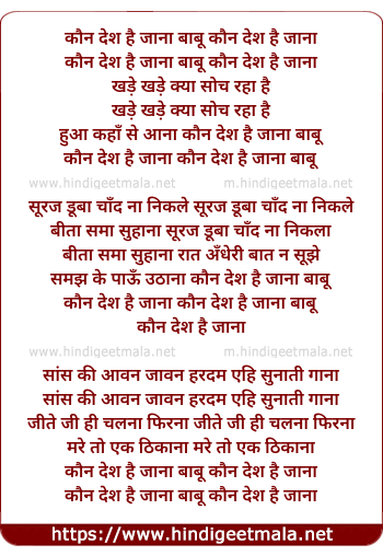 Poetic Translation - Lyrics of Kaun Desh Hai Jaana Babu
