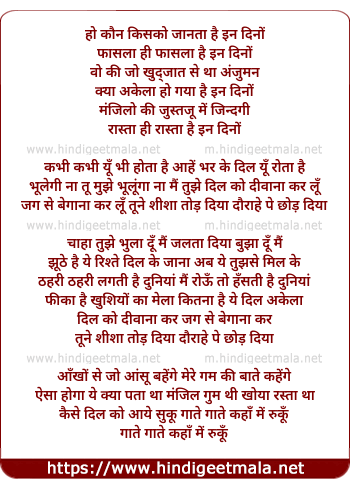 Lyrics of Kaun Kisko Janta Hai - कौन किसको जानता है
