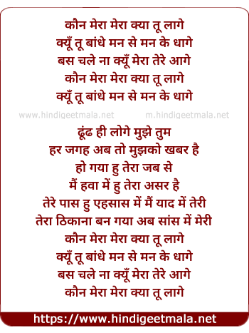 Lyrics of Kaun Mera Mera Kya Tu Lage (Female) - कौन मेरा मेरा क्या तू लागे