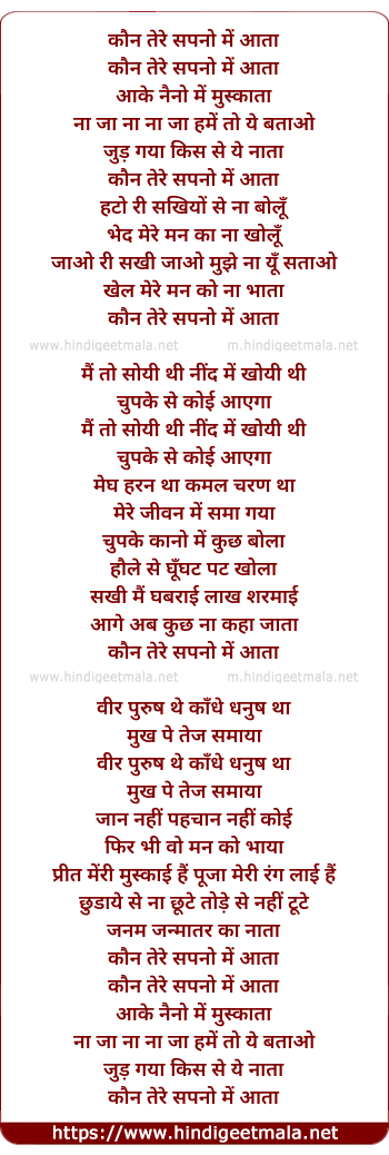 Lyrics of Kaun Tere Sapno Me Aata - कौन तेरे सपनो में आता