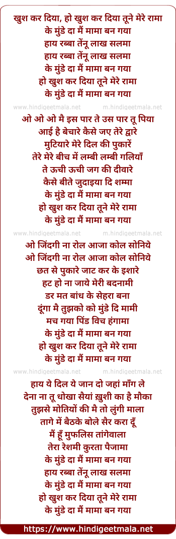 Lyrics of Ke Munde Da Main Maama Ban Gaya - के मुंडे दा मैं मामा बन गया