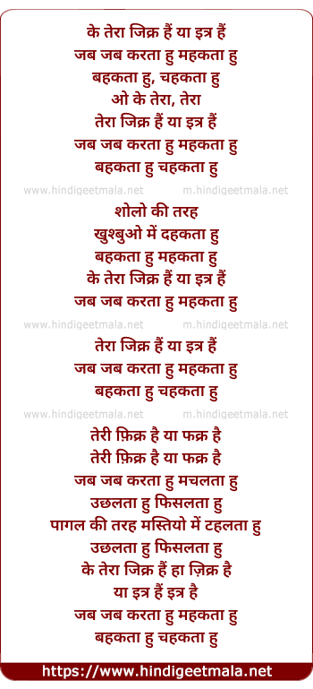 Lyrics of Ke Tera Zikr Hai Ya Itr Hai - के तेरा जिक्र हैं या इत्र हैं