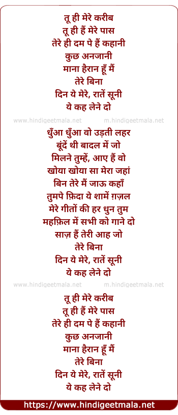 Lyrics of Keh Lene Do - तू ही मेरे करीब