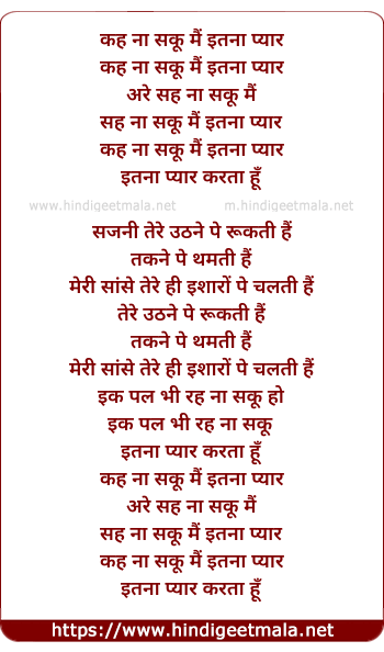 Lyrics of Keh Na Saku Main Itna Pyaar Karta Hu - कह ना सकू मैं इतना प्यार करता हूँ