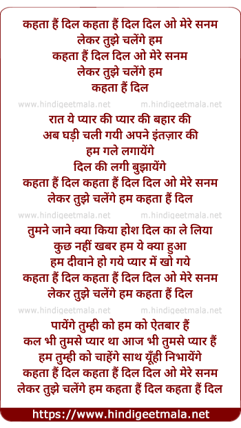 Lyrics of Kahta Hai Dil - कहता हैं दिल