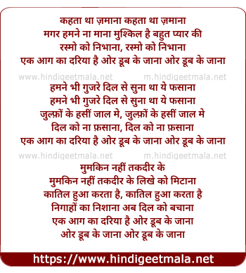 Lyrics of Kehta Tha Zamana, Magar Humne Na Maana - कहता था ज़माना, मगर हमने ना माना