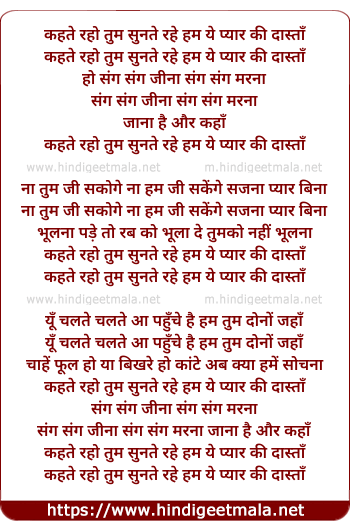 Lyrics of Kehte Raho Tum Sunte Rahe Hum - कहते रहो तुम सुनते रहे हम