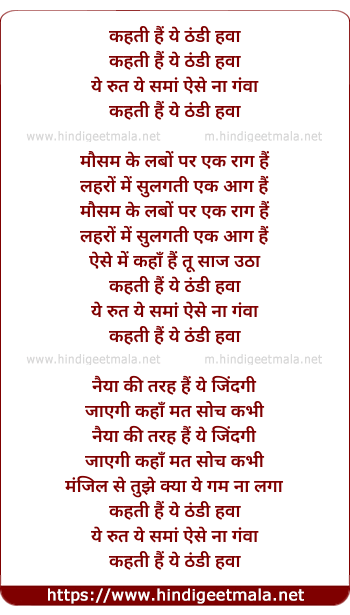 Lyrics of Kehti Hai Thandi Hawa Ye Rut Ye Sama - कहती हैं ठंडी हवा ये रुत ये समां