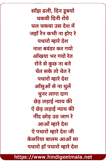 ae padharo mhare desh ji