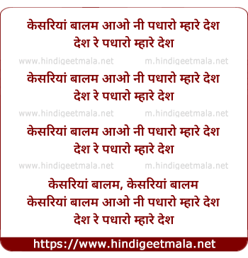 Lyrics of Kesariyaa Baalam - केसरियां बालम आओ नी पधारो म्हारे देश