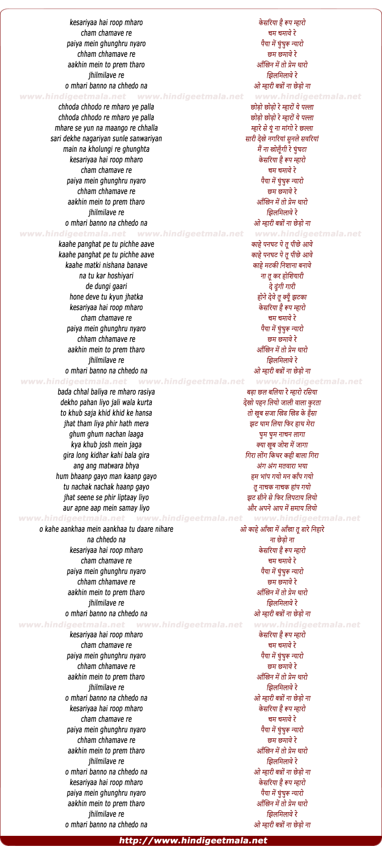 Lyrics of Kesariyaa (Suneeta Rao) - केसरिया है रूप म्हारो