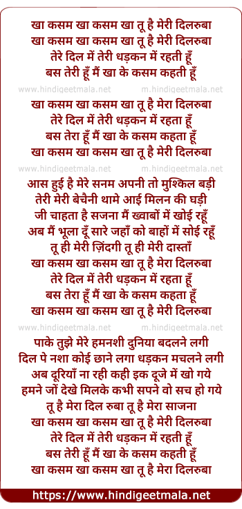 Lyrics of Kha Kasam Kha Kasam - खा कसम खा कसम