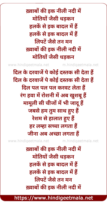 Lyrics of Khaabon Ki Ik Nili Nadi Mein - ख़्वाबों की इक नीली नदी में