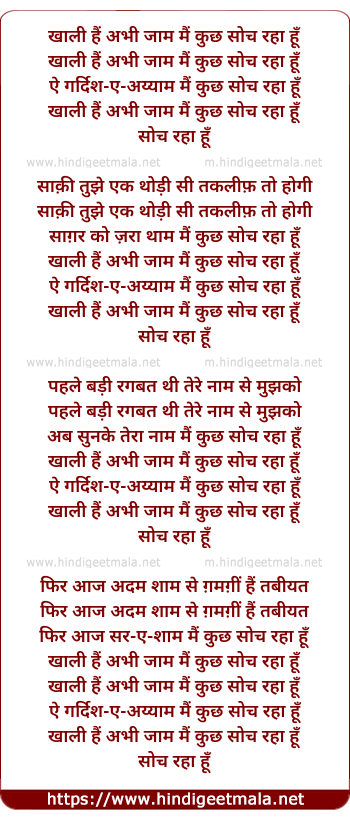 Lyrics of Khaali Hai Abhi Jaam Main Kuchh Soch Rahaa Hun - खाली हैं अभी जाम मैं कुछ सोच रहा हूँ
