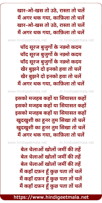 Lyrics of Khaar-O-Khas To Uthe - खार-ओ-खस तो उठे, रास्ता तो चलें