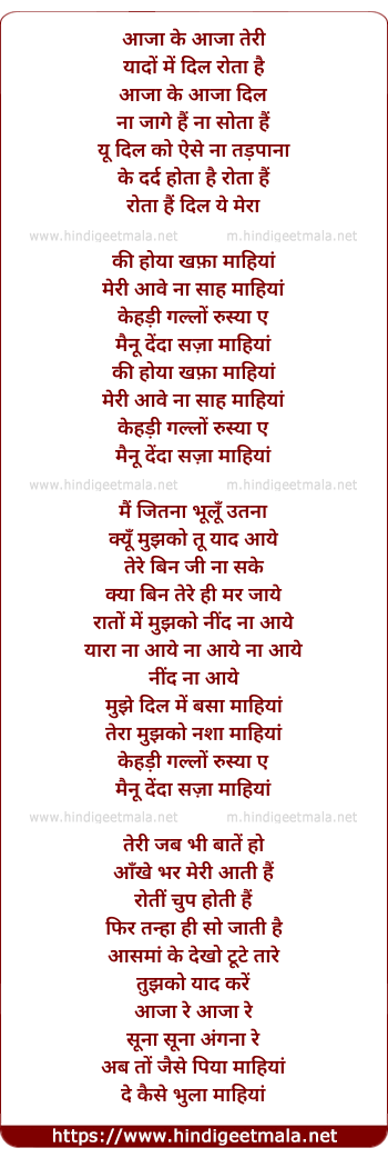 Lyrics of Khafa Mahiya - आजा के आजा तेरी