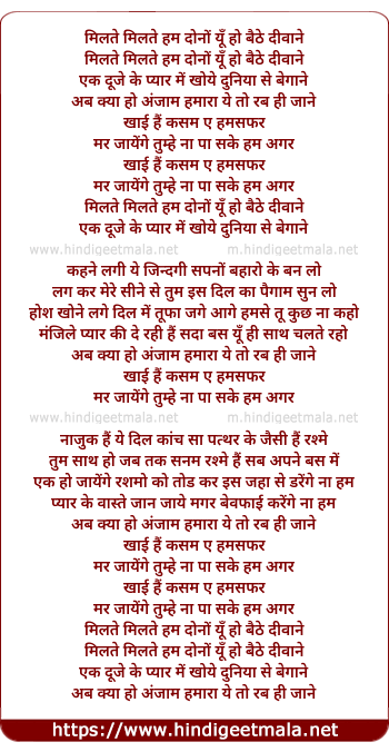 Lyrics of Khai Hai Kasam Aye Humsafar (Abb Kya Ho Anjam) - खाई हैं कसम ए हमसफर