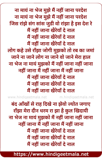 Lyrics of Khaireyan De Naal - ना मायं ना भेज मुझे मैं नहीं जाना परदेश