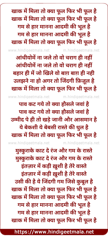 Lyrics of Khak Me Mila To Kya, Phul Phir Bhi Phul Hai - खाक में मिला तो क्या फूल फिर भी फूल है