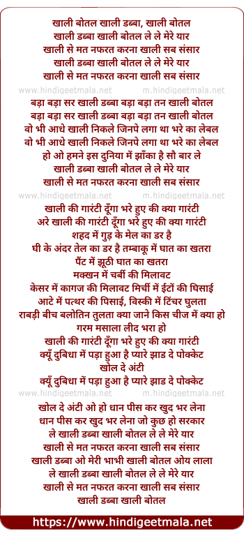 Poetic Translation - Lyrics of Khali Dabba Khali Bottle Lele Mere Yaar - खाली डब्बा खाली बोतल ले ले मेरे यार