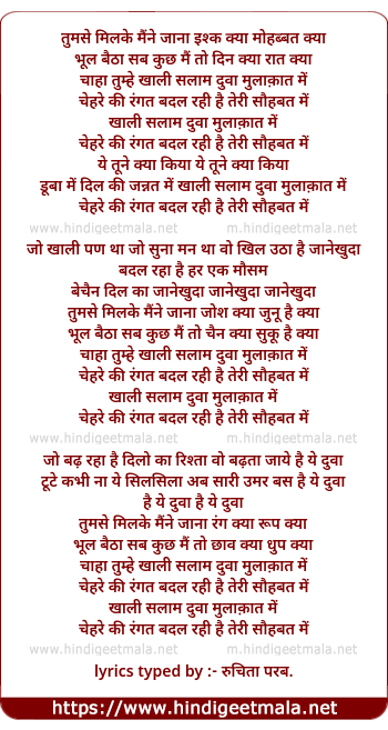 Lyrics of Khali Salam Dua Mulakat Me - खाली सलाम दुआ मुलाकात में