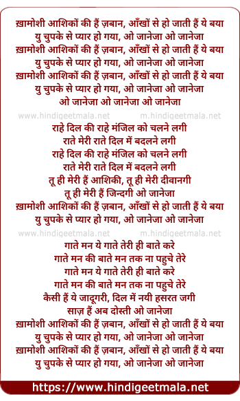 Lyrics of Khamoshi Aashiqo Ki Hai Zabaan - ख़ामोशी आशिकों की हैं ज़बान
