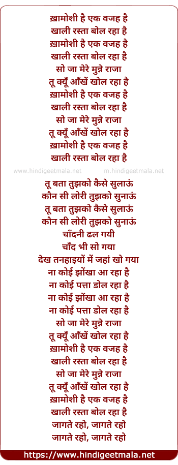 Lyrics of Khamoshi Hai Ek Vaja Hai - ख़ामोशी है एक वजह है