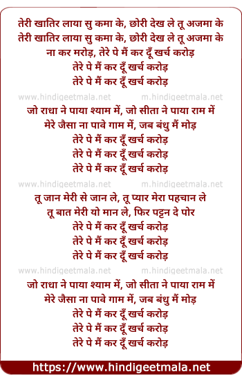 na kar marod, tere pe mai kar du kharch karod