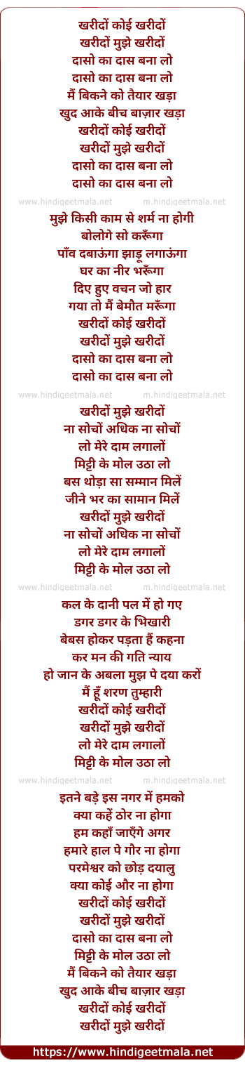 Lyrics of Kharido Koi Kharido - खरीदों कोई खरीदों