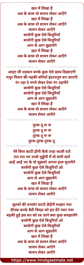 Lyrics of Khat Me Likha Hai - खत में लिखा हैं