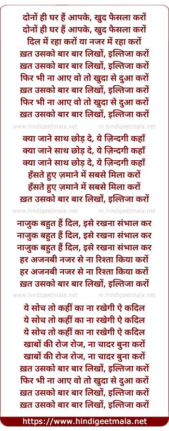 Lyrics of Khat Usko Baar Baar (Mitali Singh) - दोनों ही घर हैं आपके, खुद फैसला करों