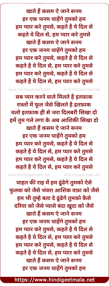 Lyrics of Khate Hai Kasam Ae Jane Sanam - खाते हैं कसम ऐ जाने सनम