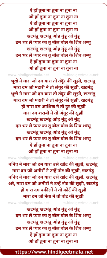 Lyrics of Khatmandu Khatmand Ho Mundu Ho Mundu - खटमंडू खटमंडू ओह मुंडू ओ मुंडू