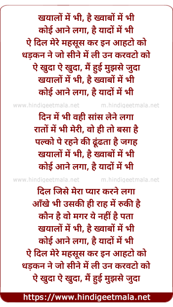 Lyrics of Khayalo Me Bhi Hai Khwabo Me Bhi - ख्यालों में भी, है ख्वाबों में भी