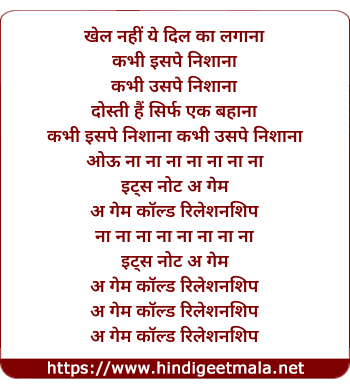 Lyrics of Khel Nahi Ye Dil Ka Lagana - खेल नहीं ये दिल का लगाना