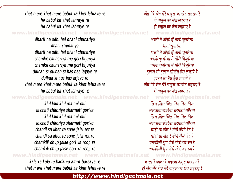 Lyrics of Khet Mere Babul Ka Khet Lahraye - खेत मेरे बाबुल का खेत लहराए