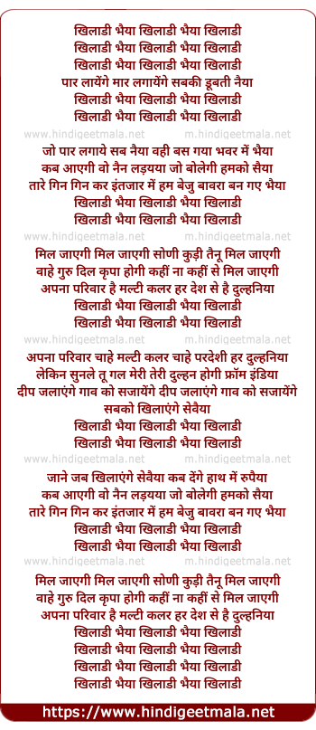 Poetic Translation - Lyrics of Khiladi (Remix) - खिलाडी