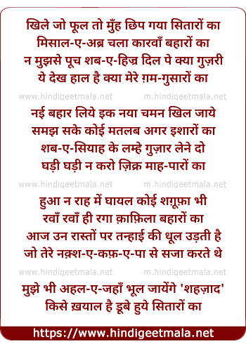 Lyrics of Khile Jo Phul To Munh Chhip Gayaa Sitaaron Kaa - खिले जो फूल तो मुँह छिप गया सितारों का